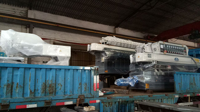 2018年5月23日 一臺9頭玻璃磨邊機(jī)一臺8頭石材磨邊機(jī)分別發(fā)往??诤透=?/span>