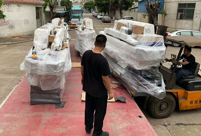 2020年5月30日 14頭多功能機、11頭常規(guī)機、8頭圓邊背切機、8頭圓邊機四臺石材磨邊機江蘇走起